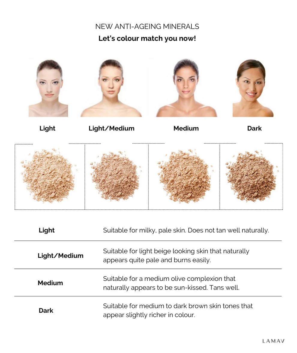 LAMAV Mineral foundation is 100% natural and can be used as a concealer, foundation and finishing powder. Buildable coverage so all skin types look flawless. Infused with Vitamin C to nourish and brighten the skin for a natural and radiant look without clogging pores or irritation.