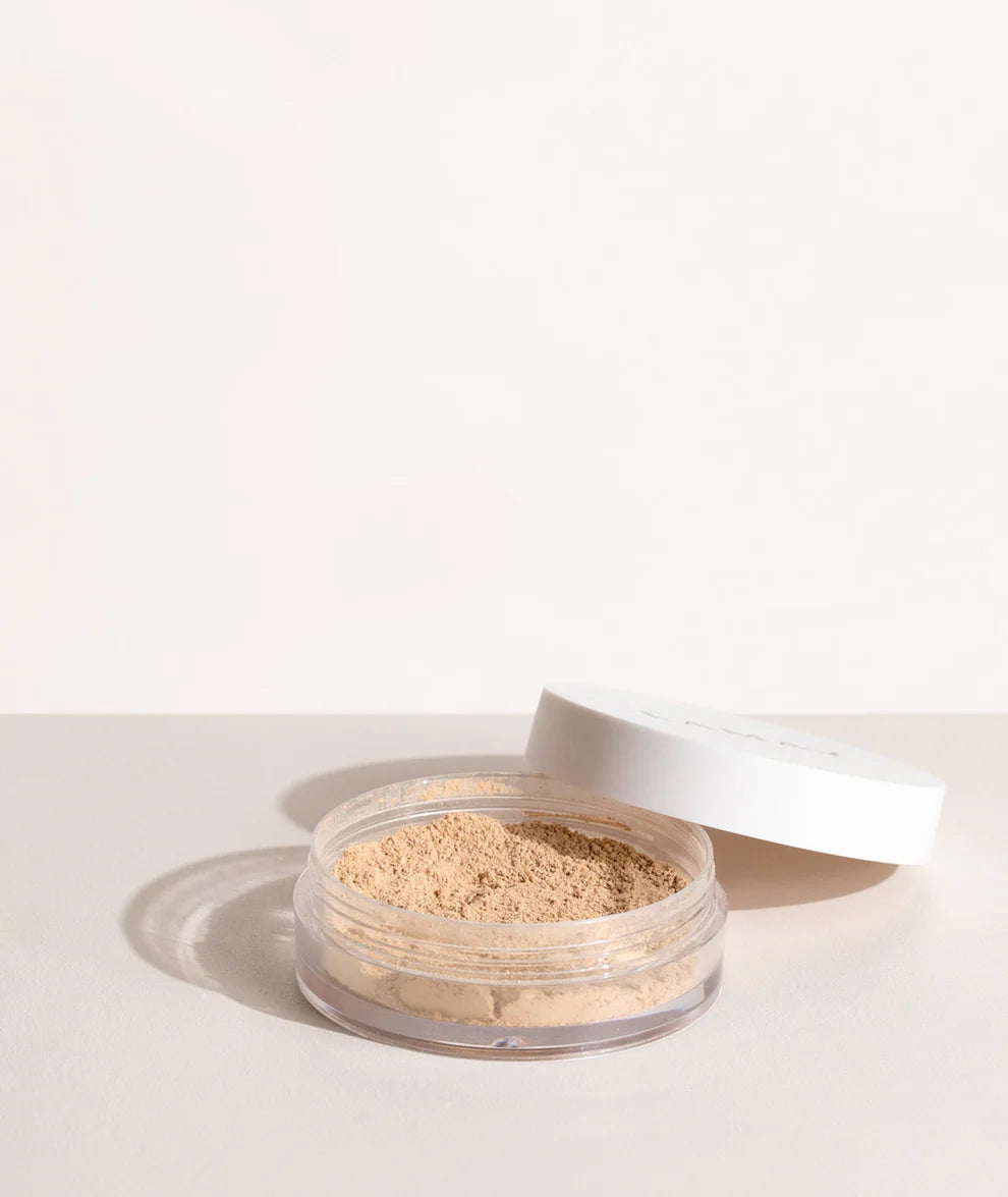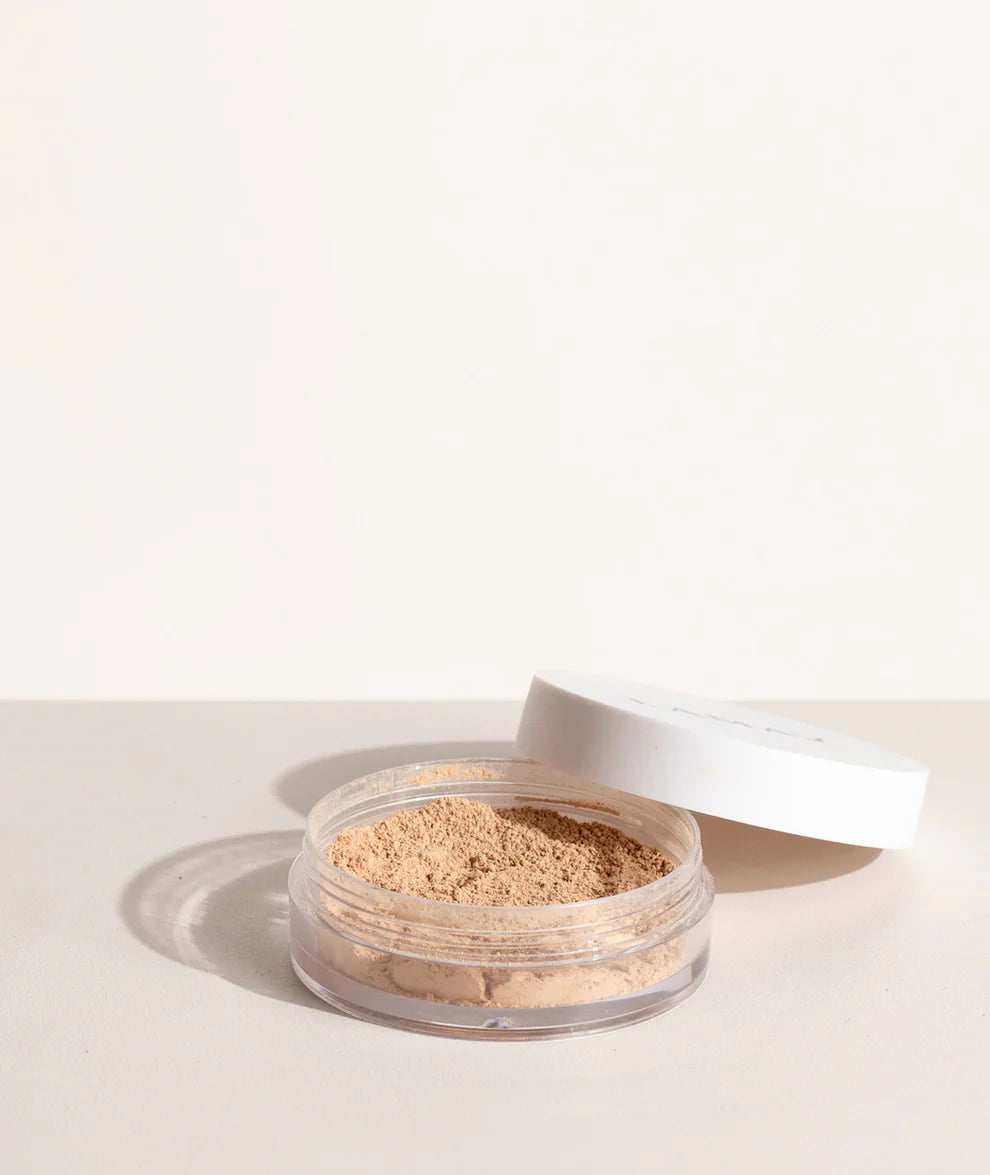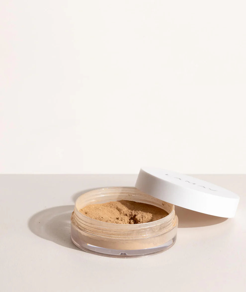- Tap the Mineral Foundation into the lid and dip LAMAV's Vegan Kabuki Brush into the product, tapping off any excess before application. Apply in sweeping and gentle buffing motions working from the centre of the face outwards. Repeat for additional coverage and finish with LAMAV's Mattifying Powder to set your makeup and provide long lasting oil control.